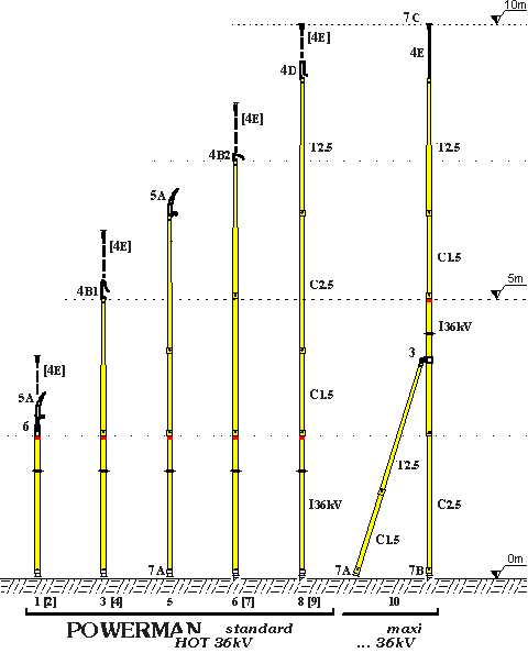 SOUPRAVY Powerman Hot 36 kV nebo 40,5 kV - Standard Optimální složení pro odstraňování námrazy a vyvětvování stromů do výšky 10m nad terénem, vybaveno pro standardní námrazové události. Powerman Hot 36 kV nebo 40,5 kV - Maxi Stejně jako standardní souprava ale navíc dodávána s ovládací tyčí a plnou sadou nástroju. Proto je tato souprava dobře vybavená také pro těžké úkoly za obtížných podmínek. Zákaznické soupravy S potěšením Vám dodáme soupravy, které budou vybaveny dle vašich specifických potřeb týkajících se maximální pracovní výšky, vybavení nástroji nebo soupravy pro vyšší jmenovité napětí (např. do 123kV) atd. Prosím, neotálejte a kontaktujte nás se svými požadavky. Příklady sestav ![]() |