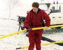 SECTIONAL POLE The poles are tubes of a cylindrical shape (C1.5, C2.0, C2.5), or a conical shape (T4.6, T4.6D). These are manufactured from a high quality composite of glass fibre and epoxy resin (GFK-EPX) of Western Europe production. This material excels in its strength and toughness (the tensile strength corresponds to that of high quality steel) at a very low specific mass (app. 1/4 of the specific mass of steel). The composite has been mass-dyed yellow, it is non-absorbent and its surface is ideally sealed. It is therefore not necessary to protect it with a coat. The base of the pole is protected against mechanical damage with a stainless steel ring. The basic component of the set is a conical head pole T4.6. Its upper end is designed to allow supplementary tools to fit into it. This pole can then be made longer to reach the required length by adding one or more center poles C1.5, C2.0 or C2.5. Instead of the head pole, any of central poles can be used (C1.5, C2.0, C2.5), depending on the length that is required. In that case the insert should be fitted with a reduction 6 and then with a working tool. The kit can be equipped with a supplementary control pole T4.6 and a sleeve 3A. It is advisable to use these when the main pole is longer than 9 metres, as it enables easier operation and multiplies the striking power, especially when knocking off a glaze ice accretion.