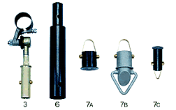 For taller assemblies, for work under strong wind conditions and/or in difficult terrain it is helpful to use a control pole (e.g. sections T2.5 + C1.5) attached to a main pole by means of Sleeve with Joint (tool no. 3). This set also brings additional stroke power when knocking off glaze ice.